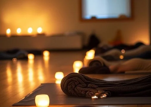 Our candlelight yin class is a slow-paced yoga practice held in a dim, candlelit room, where students hold floor-based poses for several minutes at a time to stretch connective tissues, relax the mind, and promote deep physical and mental release. This meditative class uses props for support, targeting areas like the hips and spine to increase flexibility and relieve stress, making it suitable for all levels, especially those seeking relaxation and muscle recovery.